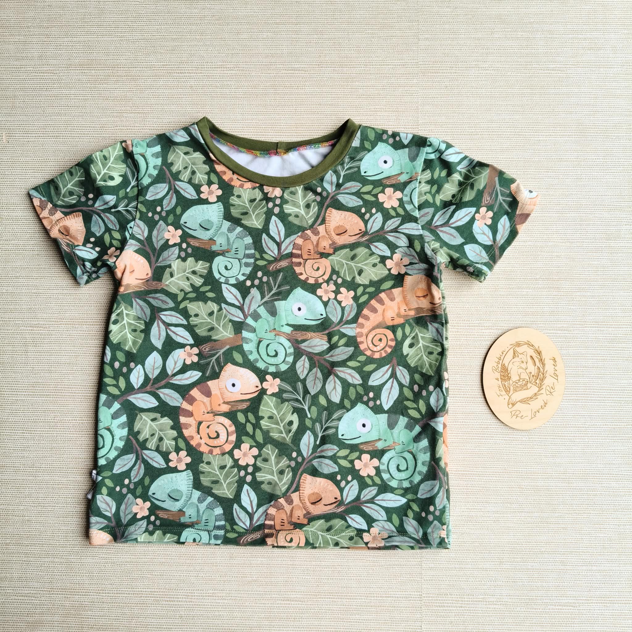Be the first to review “PRE-LOVED; RE-LOVED Age 7 Boxy T EUC Chameleons/Khaki”