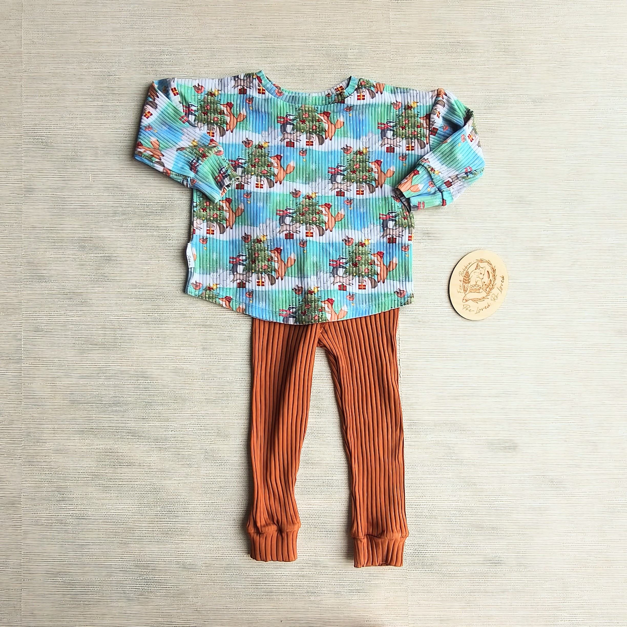 Be the first to review “PRE-LOVED; RE-LOVED Age 2 Lounge Set EUC Gather Round The Tree/Rust rib knit”