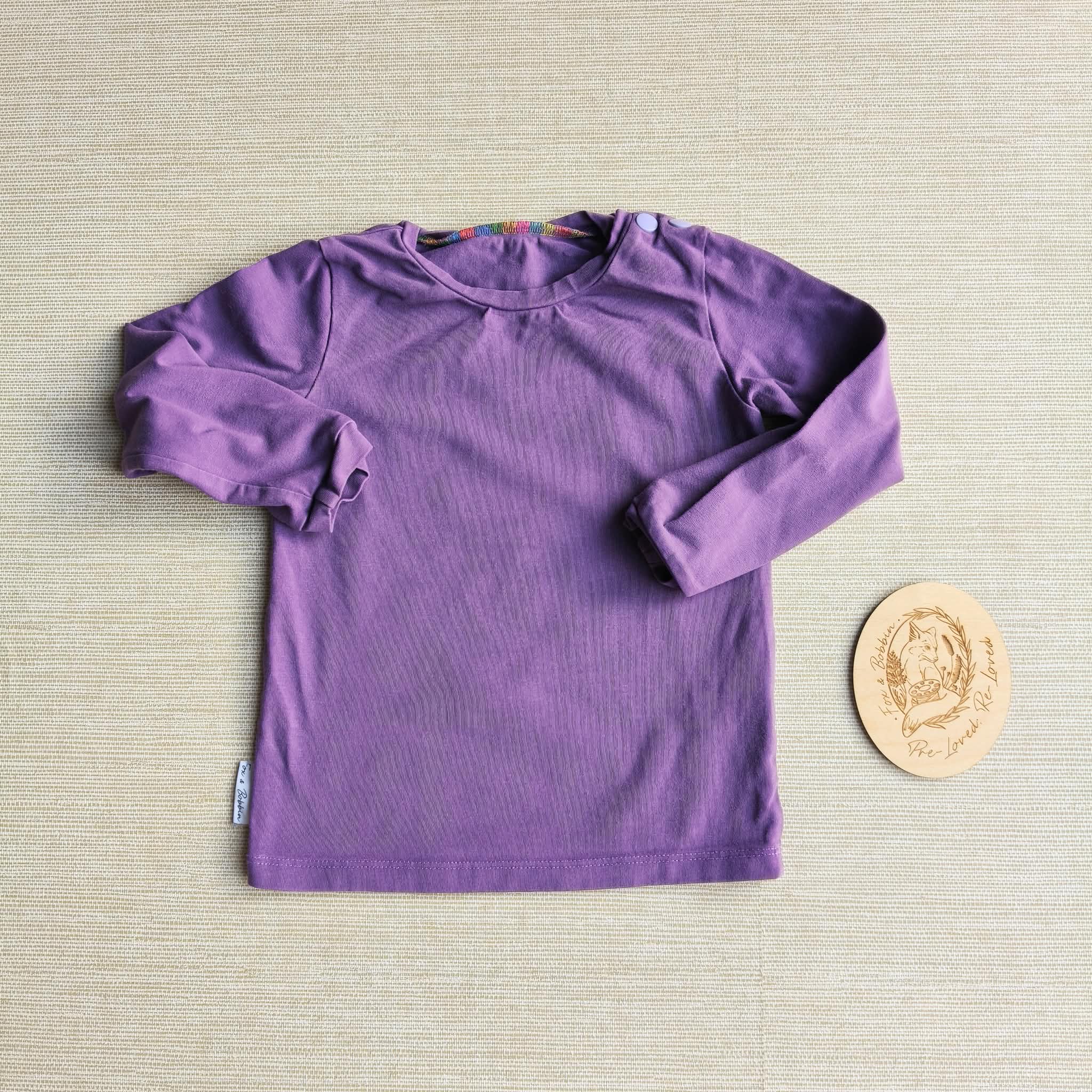 PRE-LOVED; RE-LOVED Age 2 Long Sleeve T GUC Purple with poppered neckline
