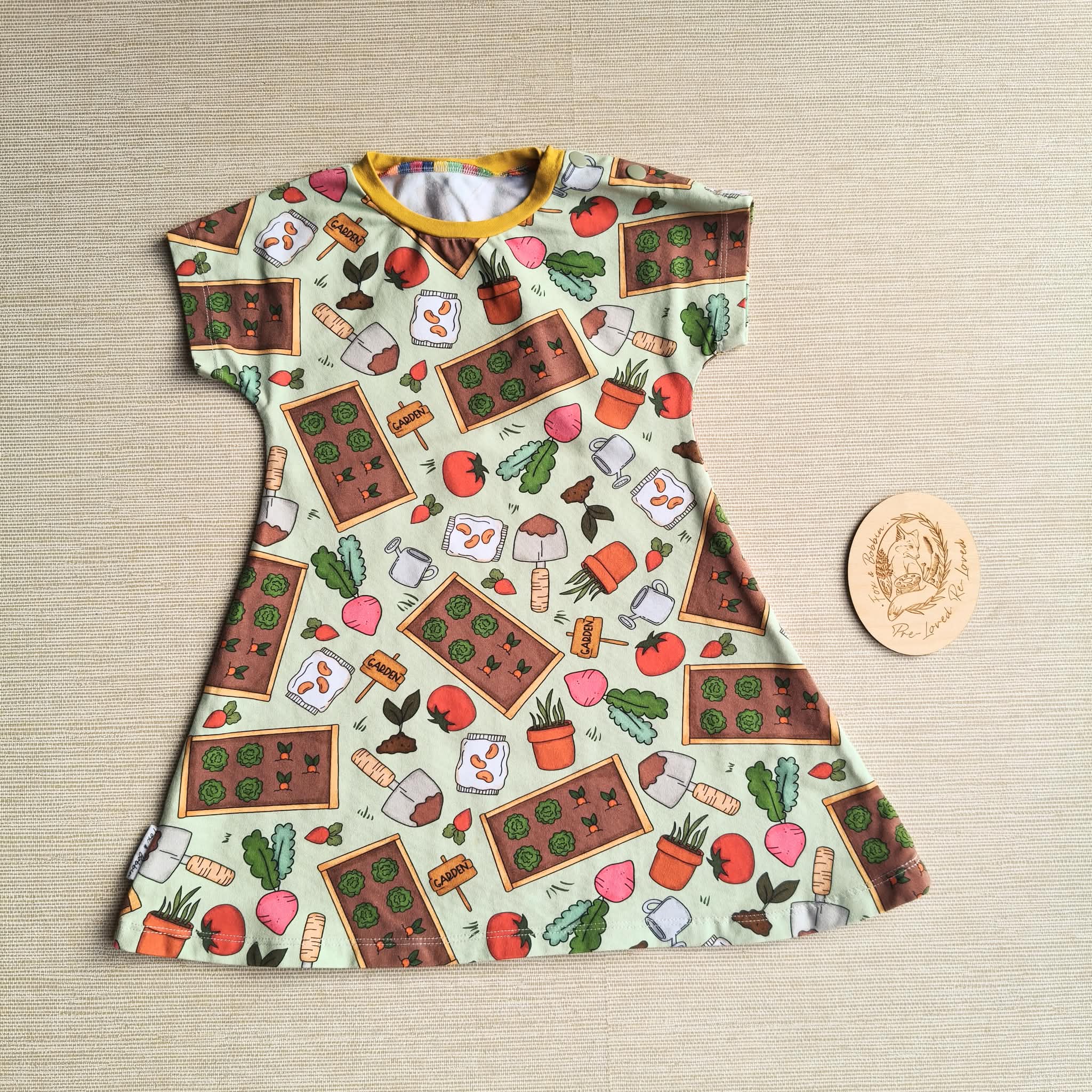 Be the first to review “PRE-LOVED; RE-LOVED Age 2 Tunic Dress EUC MM Veggie Patch/Mustard with poppered neckline”